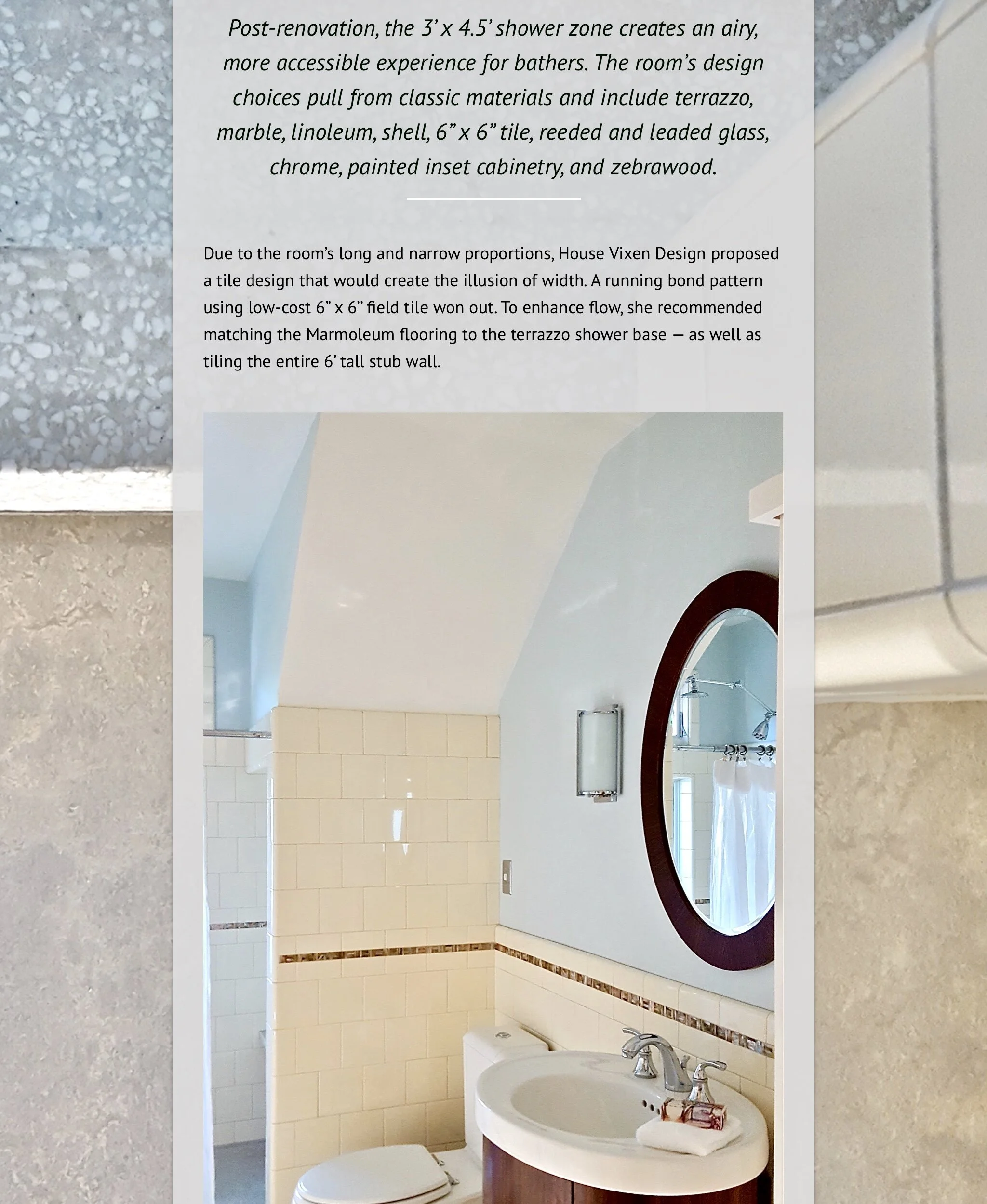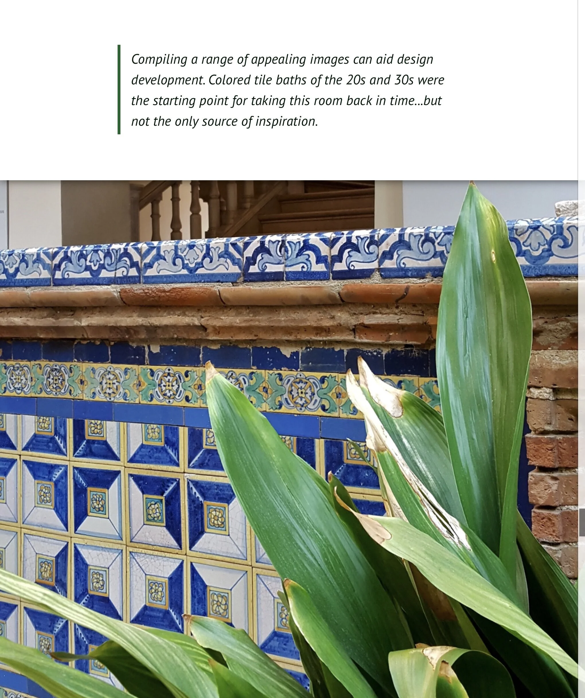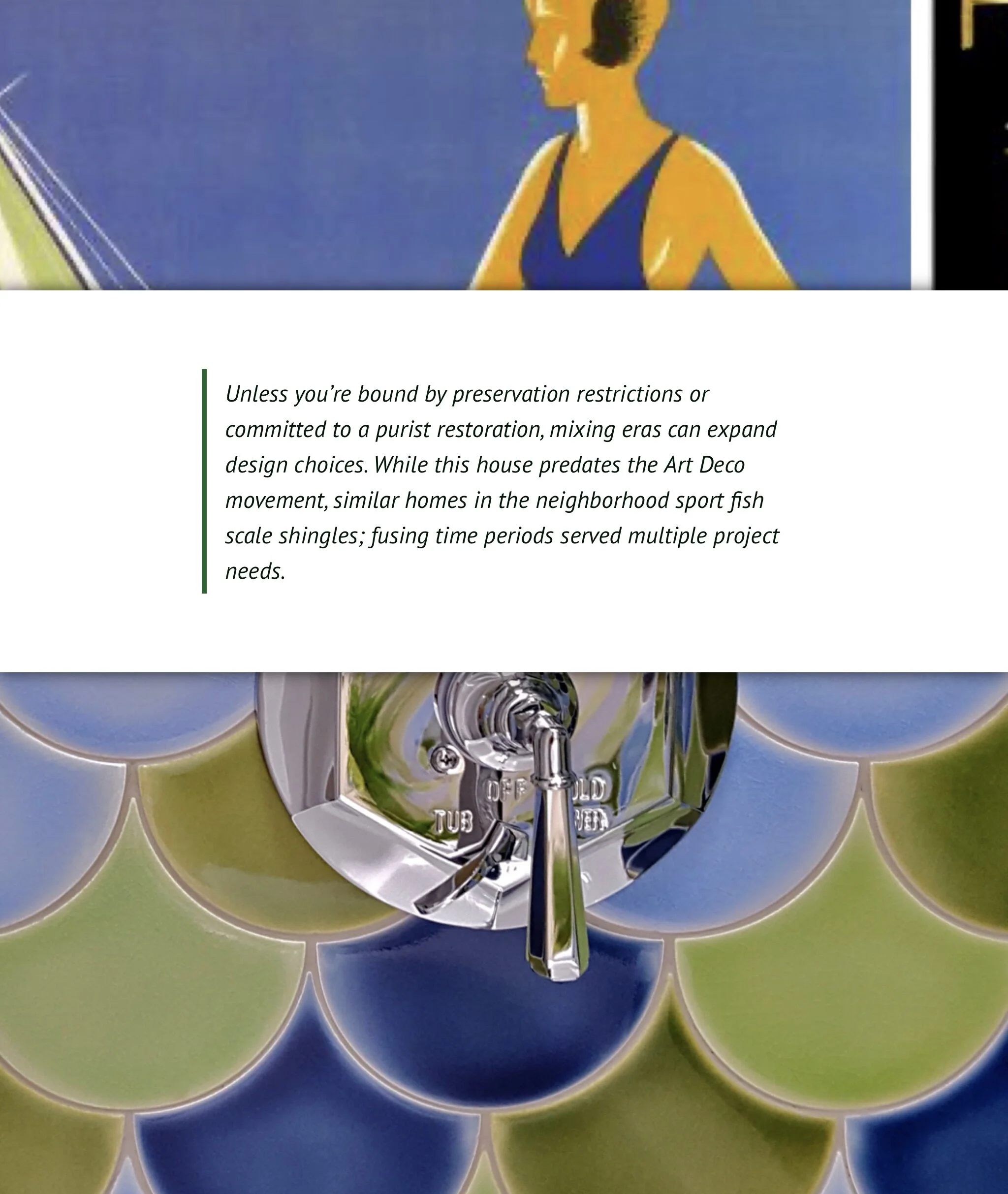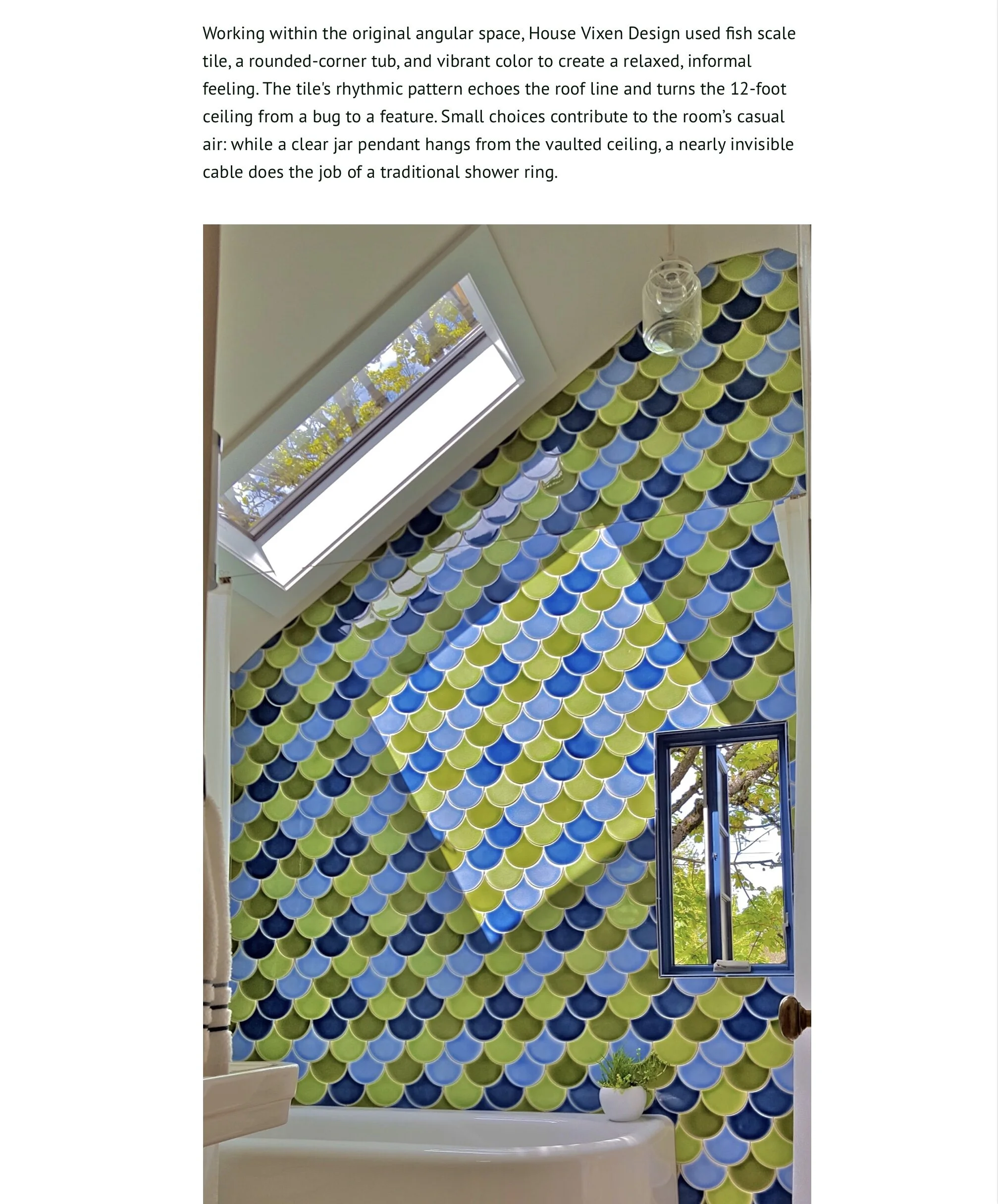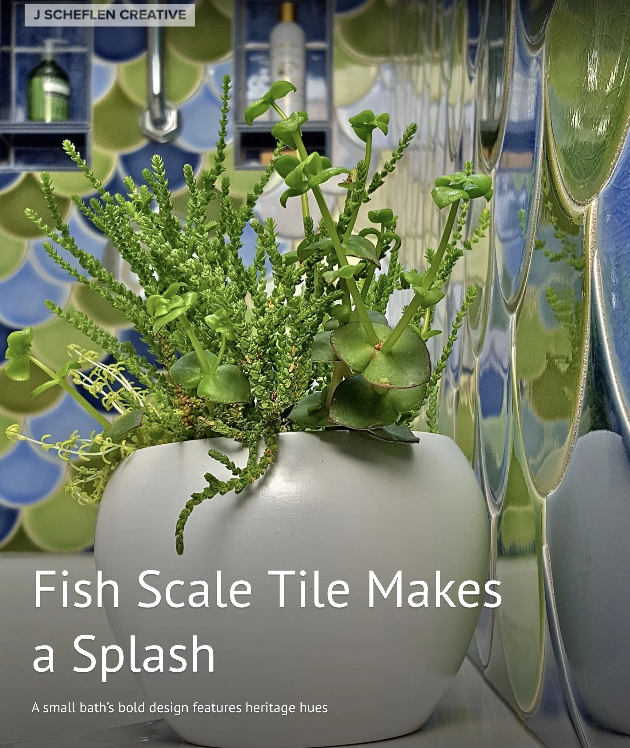 Fish Scale Tile Makes a Splash: A small bath’s bold design features heritage hues